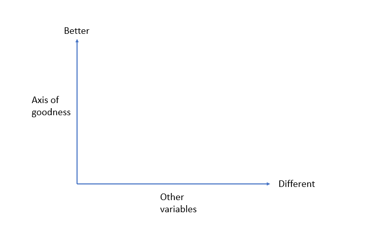 Consider a graph where going along an axis away from the origin moves you in the direction of “better”. Such an axis is an Axis of Goodness. More is always better.