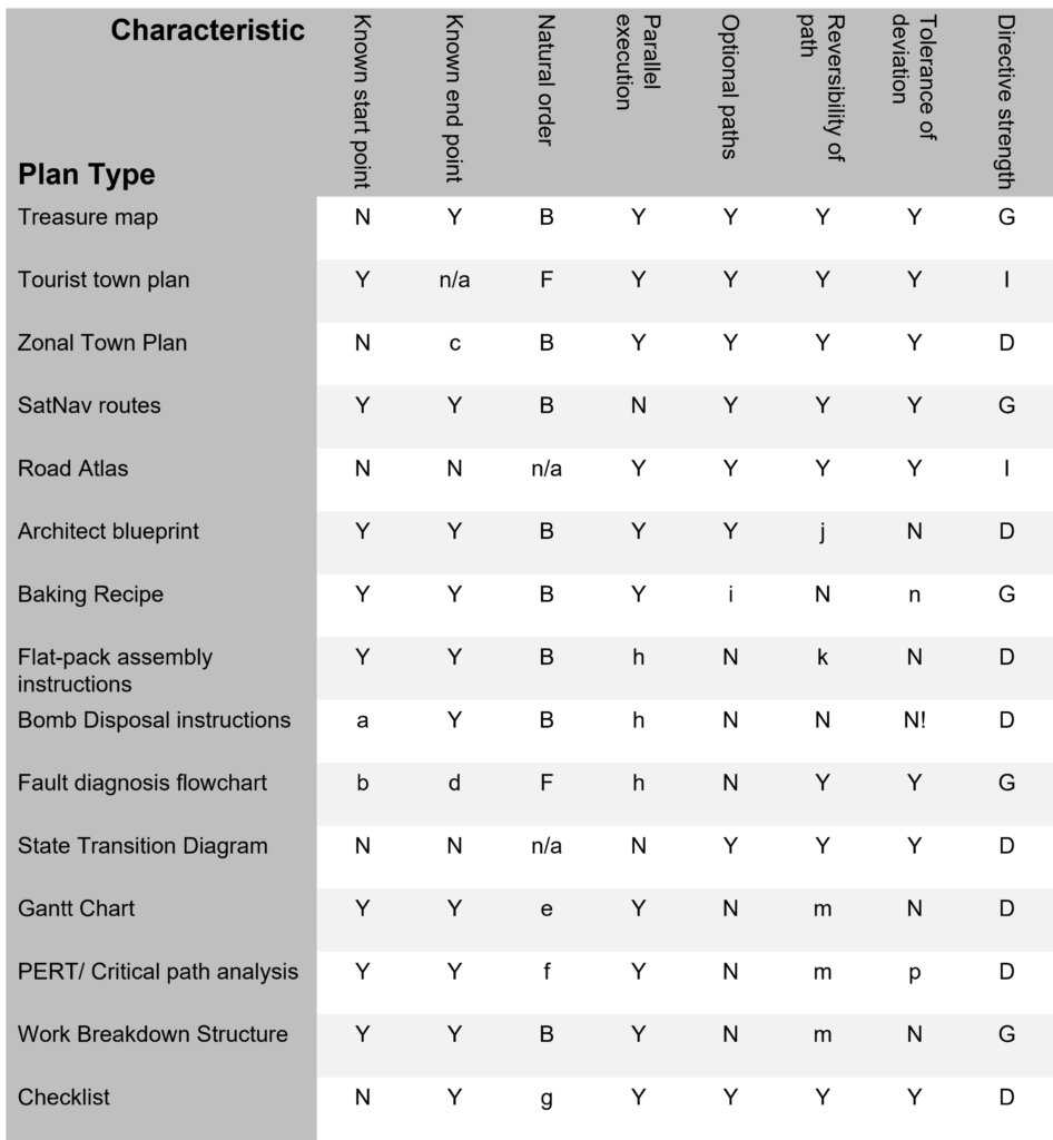 There are many other plan types and yet more characteristics but these lists suffice to show that “we need a plan” (without further definition and clarification) is itself a plan for disaster.
